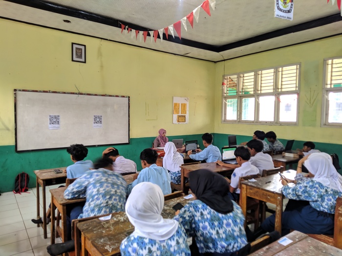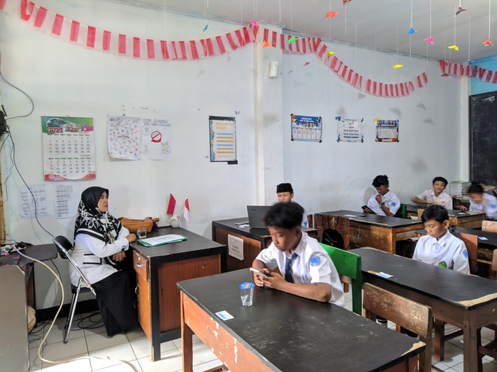 Selama pelaksanaan ujian, para siswa menggunakan perangkat handphone atau pun komputer yang telah disediakan oleh sekolah. Mereka mengerjakan soal-soal ujian yang telah diunggah ke dalam sistem secara online. Setiap siswa mendapatkan soal yang berbeda secara acak untuk menghindari kecurangan.